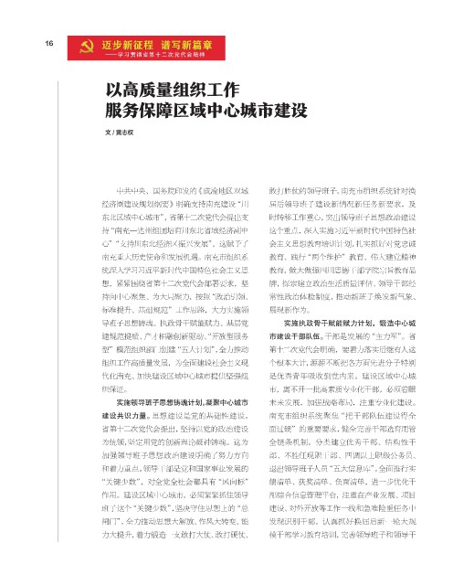 中共中央、国务院印发的《成渝地区双城 敢打胜仗的领导班子。南充市组织系统针对换