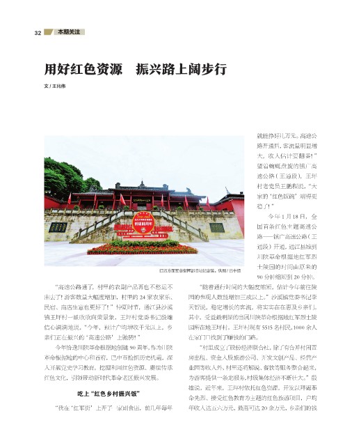 红色文化,引领带动新时代革命老区振兴发展。 为游客提供一条龙服务,村级集体经济不断壮大。”殷
