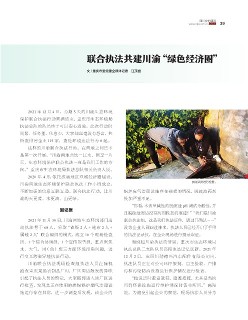 2021 年 11 月 30 日,川渝两地生态环境部门出 联合执法组,这是我们执法证件,请过目确认……”