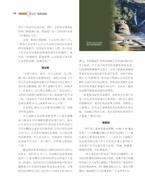 比皆是。2021 年 12 月 1 日,川渝联合执法现场检 工作人员在耐心听完该厂负责人的解释后,针