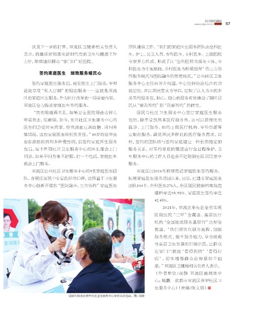双流区全力推进家庭医生签约服务。 民从“要我签约”到“我要签约”的转变。