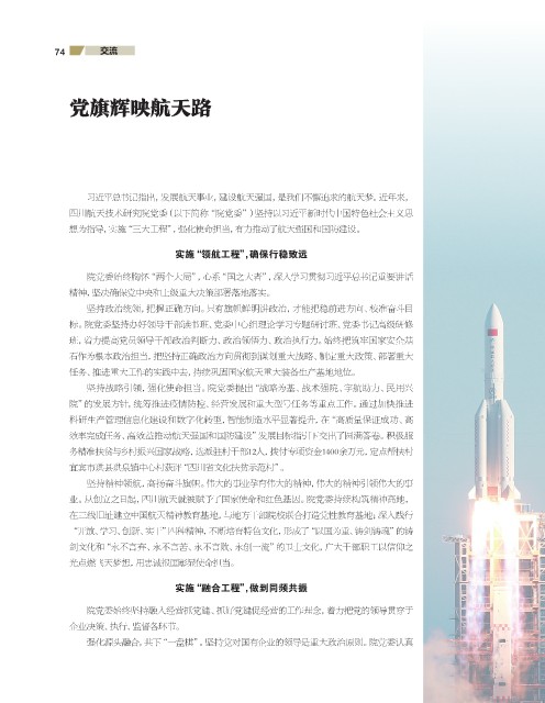 业。从创立之日起,四川航天就被赋予了国家使命和红色基因。院党委持续构筑精神高地,