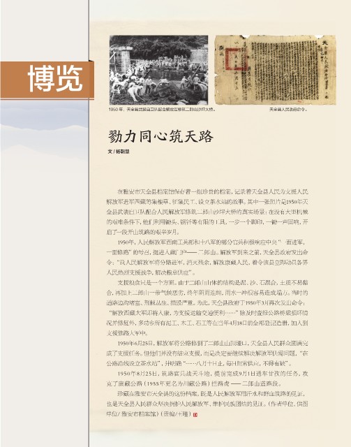 珍藏在雅安市天全县的这份档案,既是人民解放军用汗水和鲜血筑路的见证,
