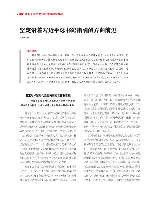 中国精神的时代精华,是新时代坚持和发展中国特色社 确了“推动治蜀兴川再上新台阶”的总体要求和“五个