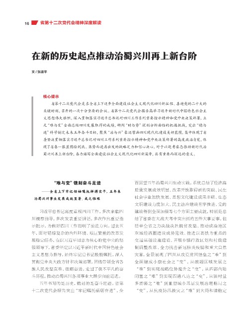 “难与变”镌刻奋斗足迹 面回望五年治蜀兴川生动实践,系统总结了经济高