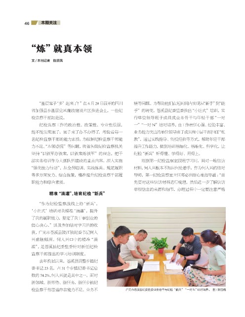 检监察干部普遍存在能力不足、业务不 广元市苍溪县纪委监委业务骨干与纪检“新兵”“一对 N”结对培养。 图 / 阳雪梅