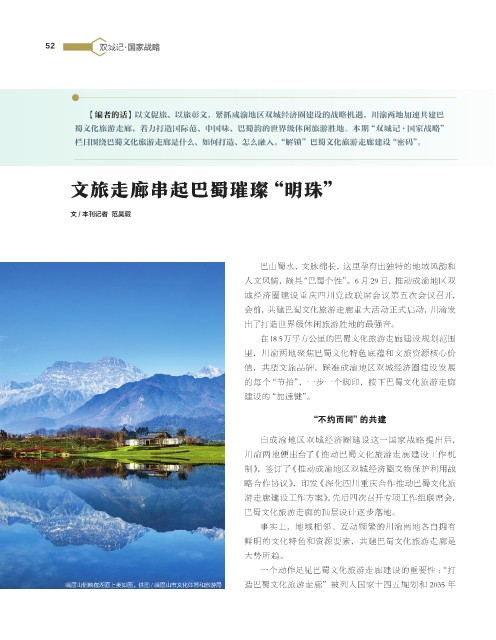 蜀文化旅游走廊,着力打造国际范、中国味、巴蜀韵的世界级休闲旅游胜地。本期“双城记·国家战略”