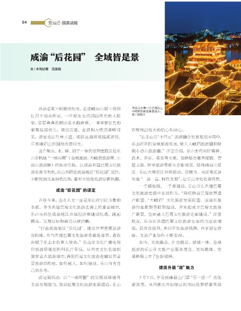 游走廊为契机,乐山市锚定成渝地区“后花园”定位, 区、乐山大佛景区双核驱动,在犍为、夹江等区县