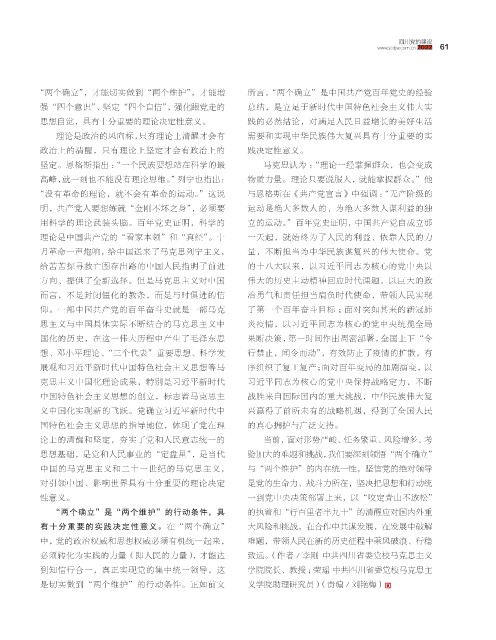 “两个确立”,才能切实做到“两个维护”,才能增 所言,“两个确立”是中国共产党百年党史的经验