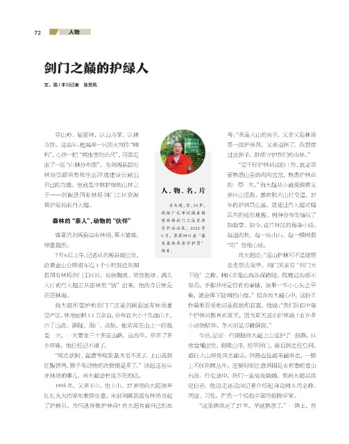 自己的力量。他就是守林护绿的山林之 的一草一木。”肖大超从小就爱跟着父