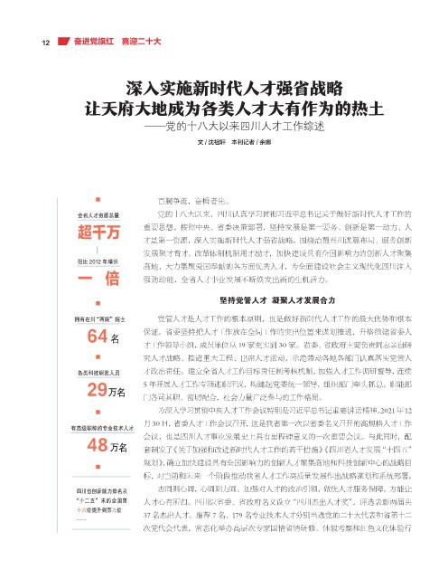 48 万名 套制发了《关于加强和改进新时代人才工作的若干措施》《四川省人才发展“十四五”