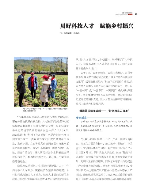 四川以人才振兴助力乡村振兴,用好用活广大科技