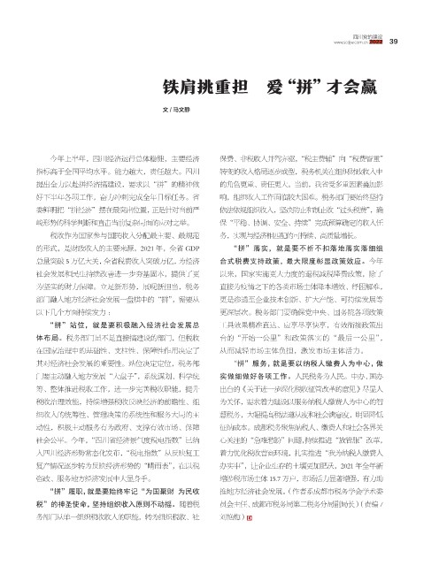 “拼”履职,就是要始终牢记“为国聚财 为民收 推地方经济社会发展。(作者系成都市税务学会学术委