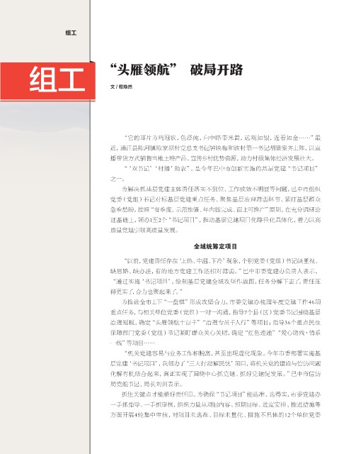 治理短板,确定“头雁领航十百千”“治理专员千人行”等项目;指导36个重点民生