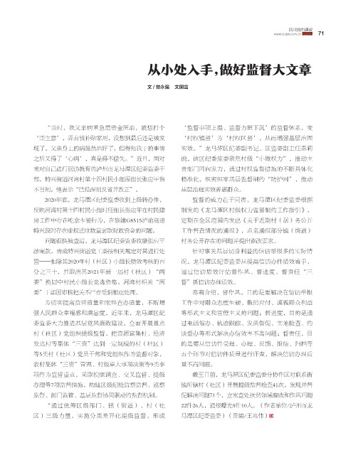 ‘歪主意’,弄点钱补贴家用,没想到最后还是被发 ‘村权镇督’为‘村权区督’,从而增强基层治理