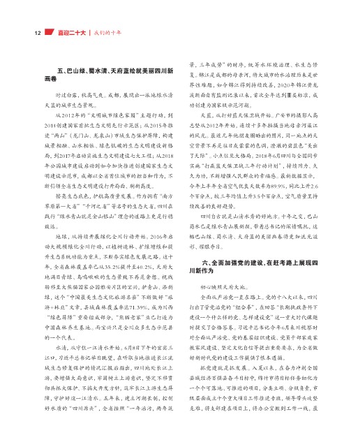 五、巴山绿、蜀水清、天府蓝绘就美丽四川新