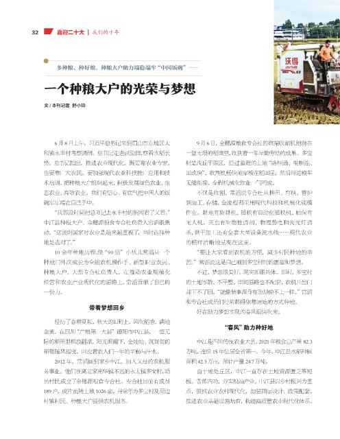 6月 8 日上午,习近平总书记来到眉山市东坡区太 9月 6 日,金穗源粮食专合社的数架收割机驰骋在