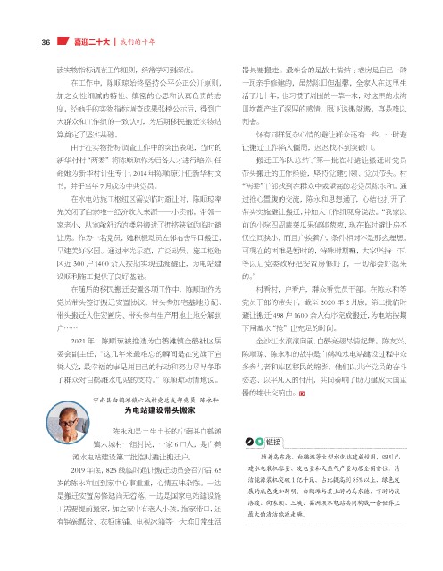 在水电站施工枢纽区需要临时避让时,陈顺琼率 过推心置腹的交流,陈永和思想通了,心结也打开了,