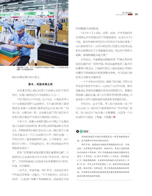 新区从上到下,从街道到企业,深入推动成渝合作的 两年多来,成渝地区双城经济圈建设起步扎实、开局