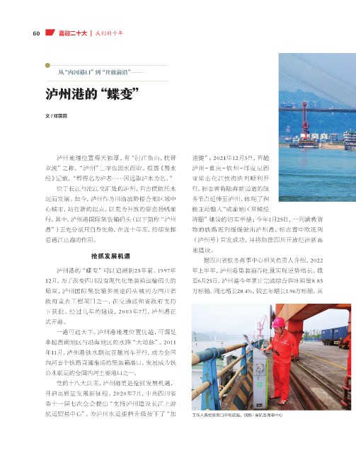 位于长江与沱江交汇处的泸州,自古便依托水 行,标志着将陆海新通道的服