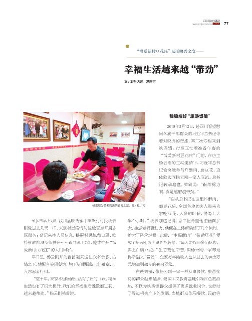 生活也有了很大提升,我们的幸福生活就像磨豆花, 热,不仅为映秀镇群众提供了更多就业岗位,也带动