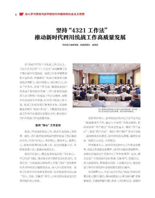 代四川统战工作高质量发展。 坚持维护核心。全省统战系统牢记习近平总书记