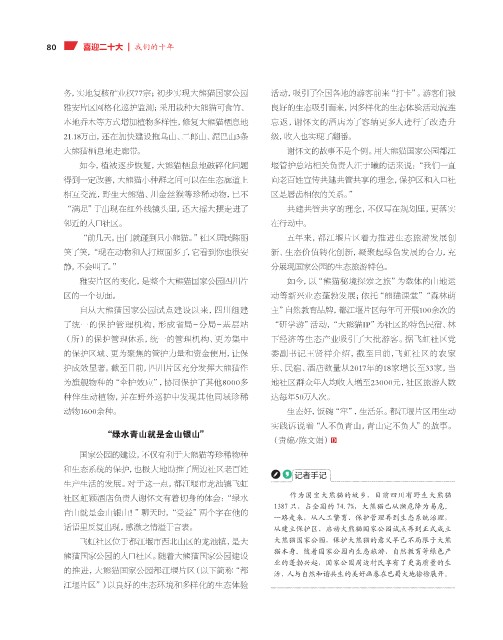 得到一定改善,大熊猫小种群之间可以在生态廊道上 向老百姓宣传共建共管共享的理念,保护区和入口社
