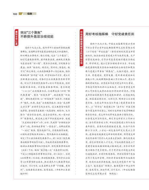 党的十九大以来,德阳市中江县始终坚持把服 下的全资子公司中冶成都勘察研究总院有限公司