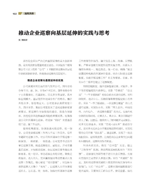 措,是实现监督全覆盖的重要途径。川庆钻探工程有 制,严格审查相关制度和巡察实施方案,从源头上