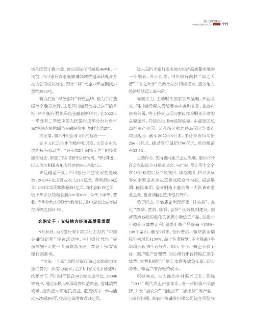 标。四川银行强化绿色金融创新研究,在2022年 决策部署,将支持重点项目建设作为服务川渝的