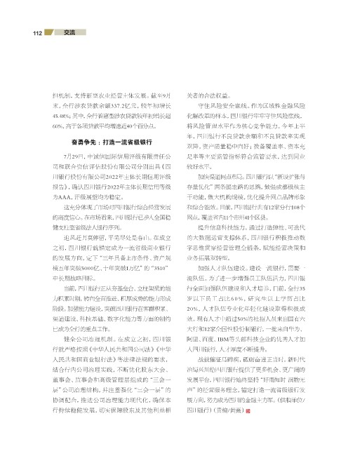 报告》,确认四川银行2022年主体长期信用等级 存量优化”两条腿走路的思路,做强成都极核主