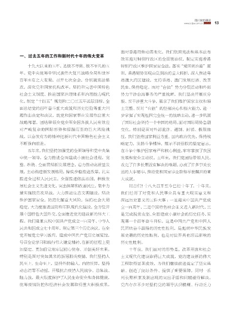 稳定,大力度推进国防和军队现代化建设,全方位开 立一百周年,二是中国特色社会主义进入新时代,三