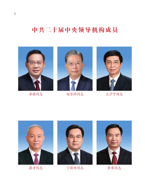 2 中共二十届中央领导机构成员 李强同志 赵乐际同志 王沪宁同志 蔡奇同志 丁薛祥同志 李希同志