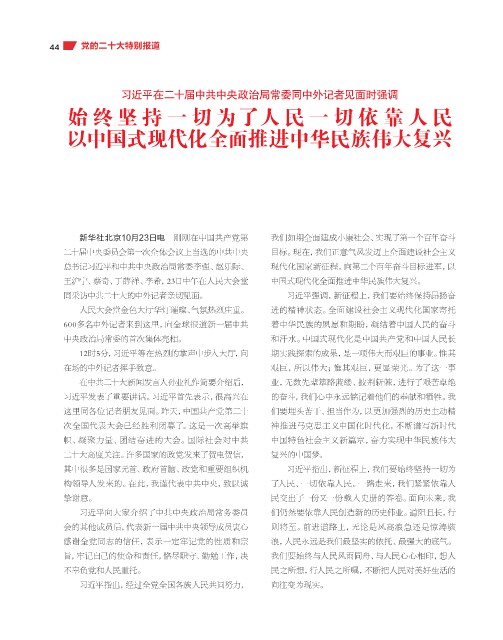 习近平在二十届中共中央政治局常委同中外记者见面时强调