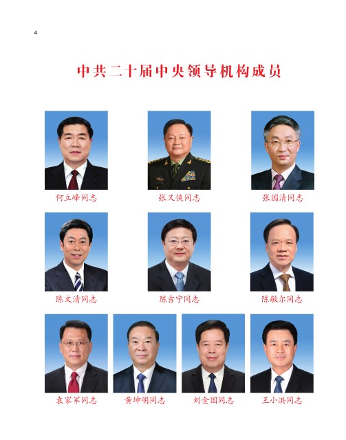4 中共二十届中央领导机构成员 何立峰同志 张又侠同志 张国清同志 陈文清同志 陈吉宁同志 陈敏尔同志 袁家军同志 黄坤明同志 刘金国同志 王小洪同志