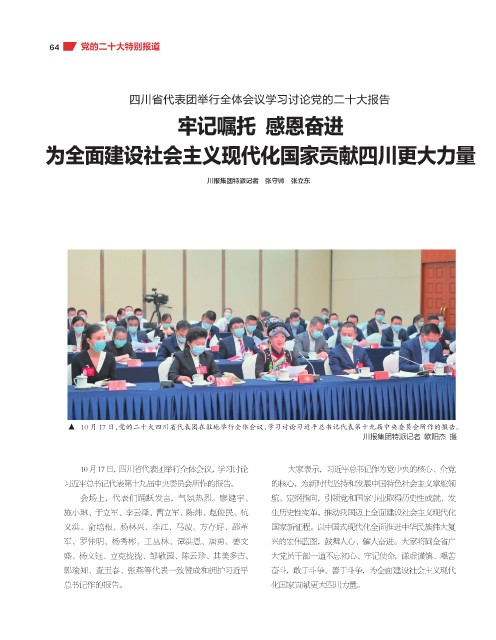 ▲ 10 月 17 日,党的二十大四川省代表团在驻地举行全体会议,学习讨论习近平总书记代表第十九届中央委员会所作的报告。