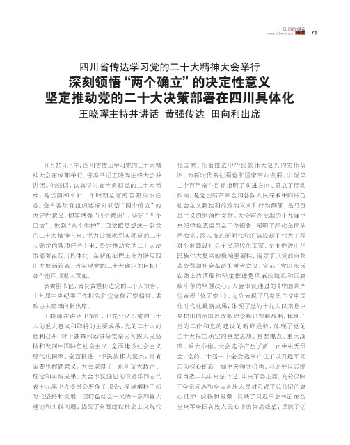 10月25日上午,四川省传达学习党的二十大精 化 国 家、全 面推 进 中 华 民 族 伟 大 复 兴 的宏伟 蓝