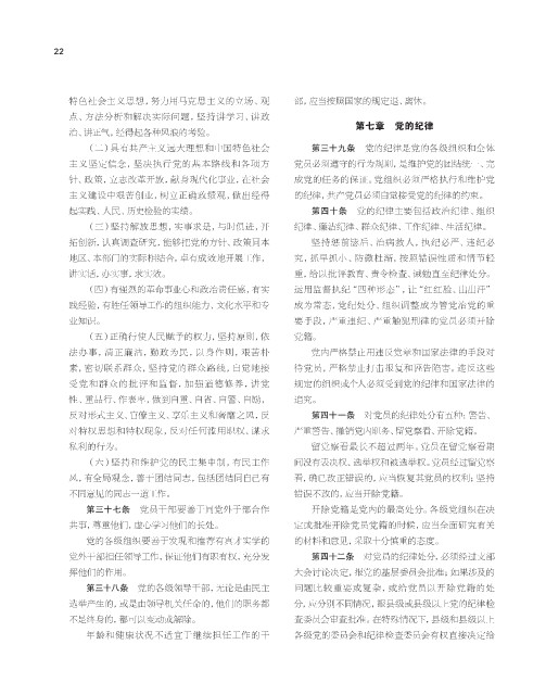 党外干部担任领导工作,保证他们有职有权,充分发 第四十二条 对党员的纪律处分,必须经过支部