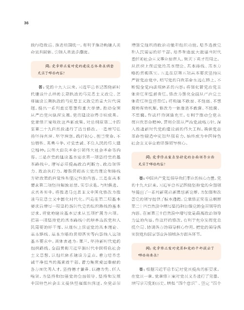容。二是在党的建设 基本要求第一项坚 持 党的基 问:党章修正案在坚持党的全面领导方面