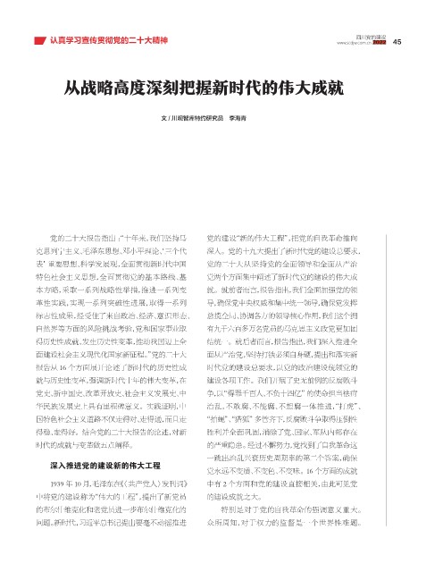 中将党的建设称为“伟大的工程”,提出了新党员 的建设成就之大。