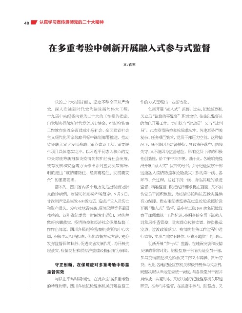 的特殊时期,四川各地纪检监察机关开展监督工 职责,在参与中监督,在监督中参与,既督战、又