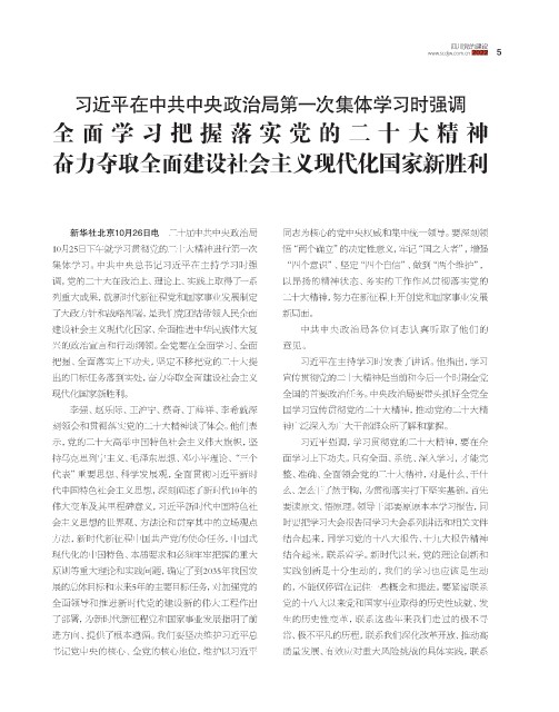 现代化国家新胜利。 全国的首要政治任务。中央政治局要带头抓好全党全