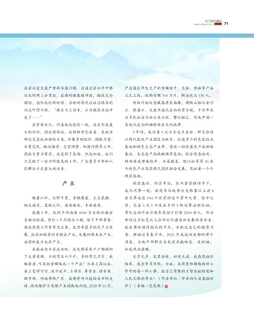 展。我深知脱贫的关键在产业,发展的根本在产业, 量,挥洒过青春汗水。2021 年我返回成都的那个