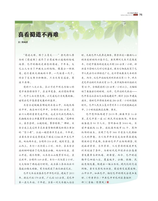 道的侧畔增添了巴陕高速公路,双向四车道,逢 利用创造了条件,为新时代巴中经济社会高质