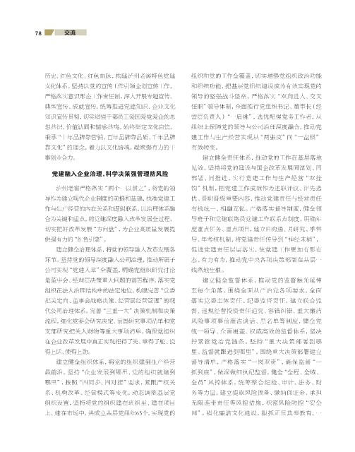 历史、红色文化、红色血脉,构建泸州老窖特色党建 组织和党的工作全覆盖,切实增强党组织政治功能