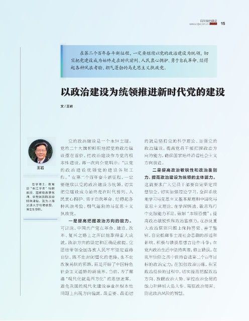 的 政 治 建 设 统 领 党的建 设 各 项 工 二是 提 高 政 治敏 锐性和政 治鉴 别