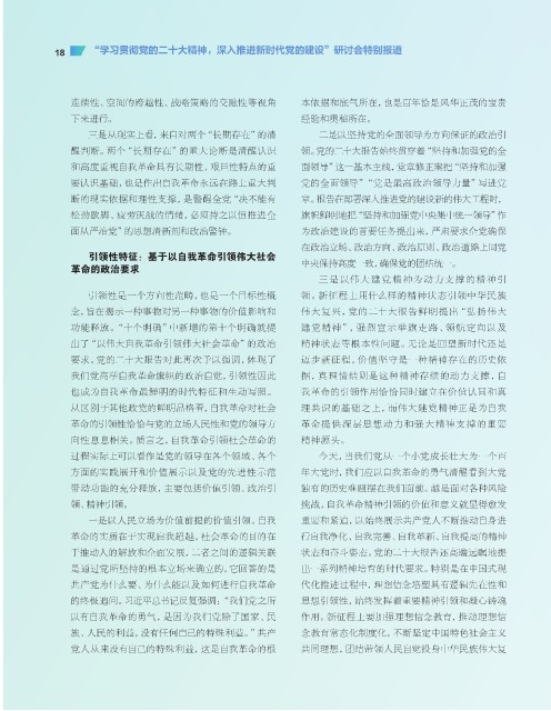 我们党高举自我革命旗帜的政治自觉,引领性因此 据,真 理情 结则是 这种精神存续的动力支 撑,自