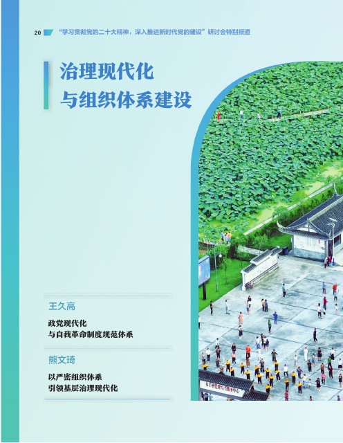 20 “学习贯彻党的二十大精神,深入推进新时代党的建设”研讨会特别报道 治理现代化 与组织体系建设 王久高 政党现代化 与自我革命制度规范体系 熊文琦 以严密组织体系 引领基层治理现代化