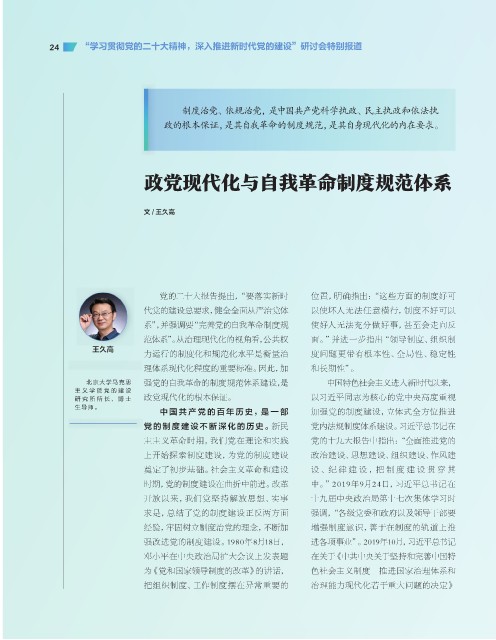 政党现代化与自我革命制度规范体系