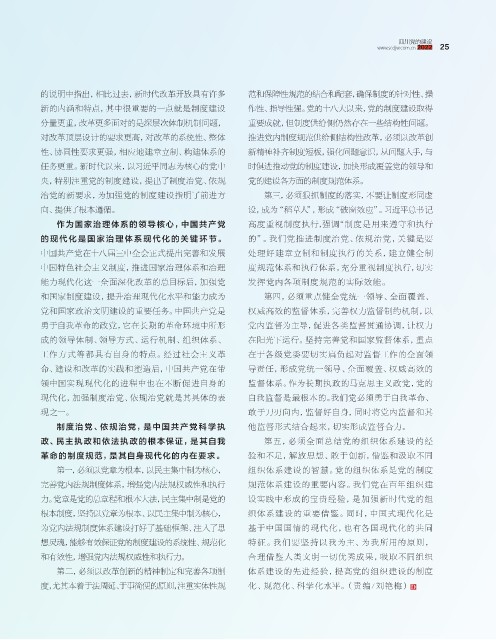 想灵魂,能够有效保证党的制度建设的系统性、规范化 特 征。我们 要坚 持以我为主、为我 所用的原则,